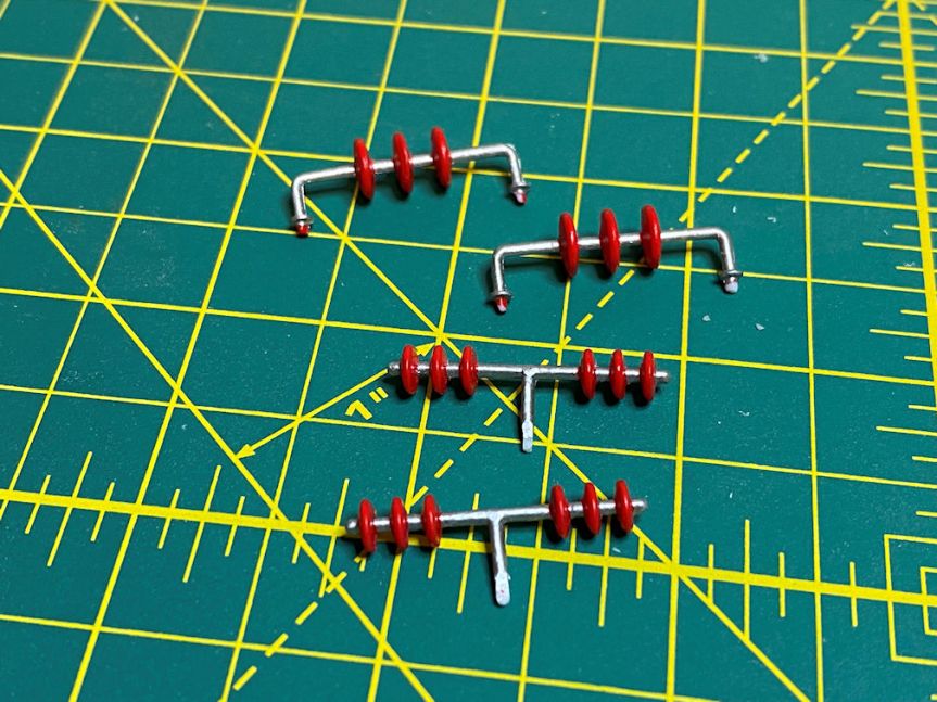 I then moved to the Gas Condensers (bottom two in the photo below) and Solar Heat Exchangers. I started by painting them with Tamiya XS-86 Pure Red. I then used Vallejo 71.063 Silver RLM01 to paint the pipes.