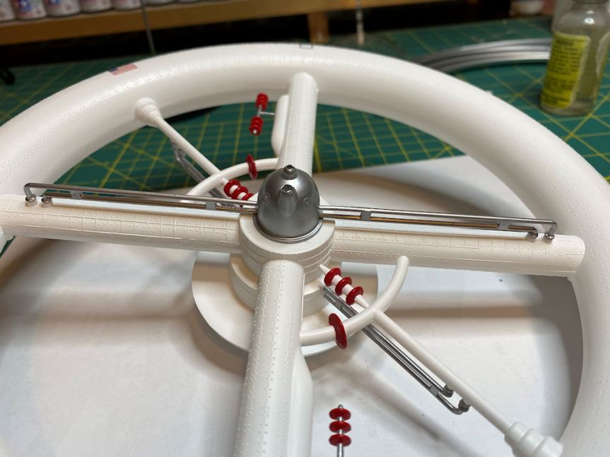 Finally the antenna was added to the communications dome. You can also see the larger rod that connects the model to the base.