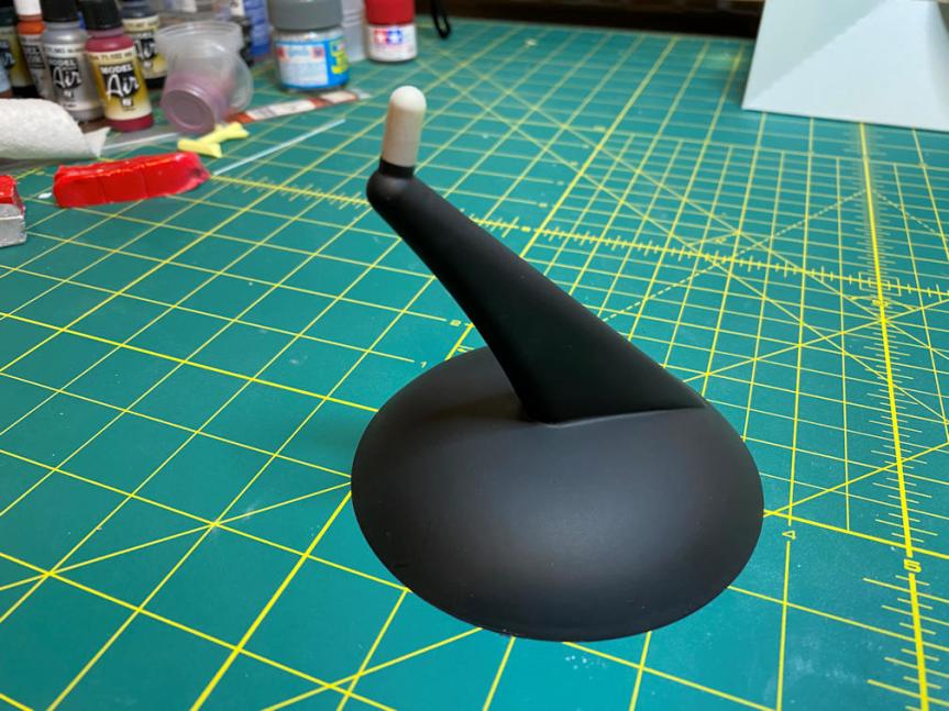 I then sprayed the upper dome Tamiya White Primer. I decided that I would go with a white space station instead of a yellow one.
