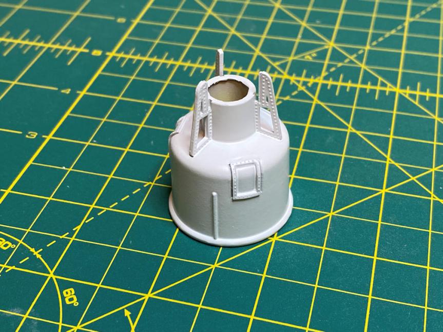 I also sprayed primer white on the rest of the station. I will wait to install the upper dome until both the upper dome and the station have had both the paint and decals applied.