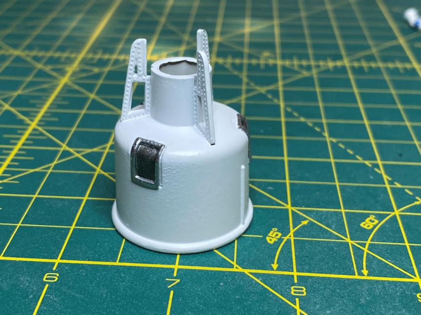 The frame around the doors on the upper dome were painted Testors Model Master 1750 Chrome Silver and the actual doors Tamiya XF-56 Metallic Gray.