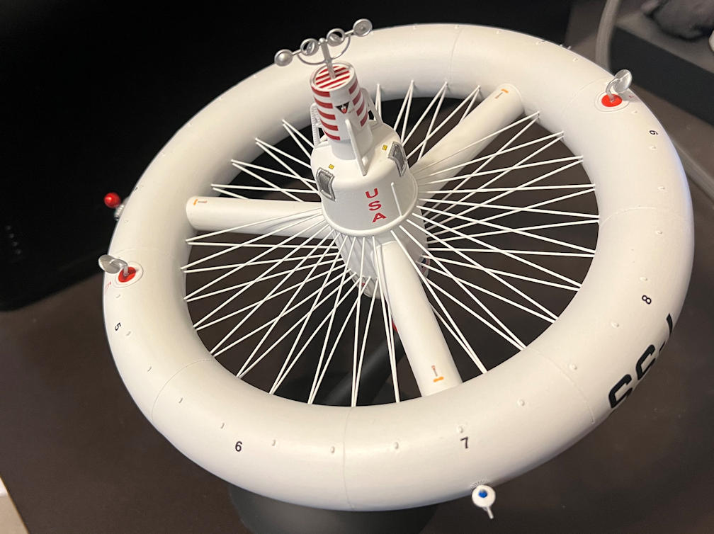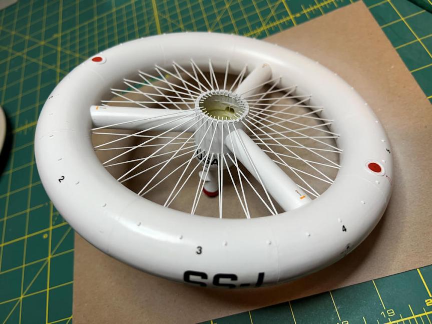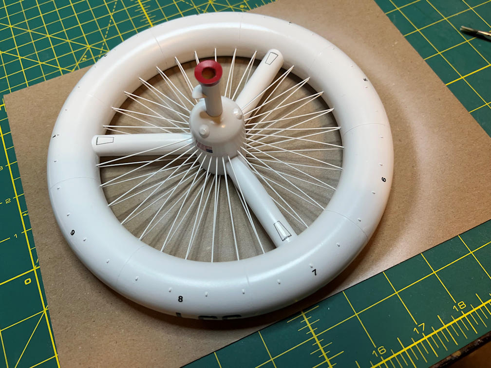 The bottom dome and ring of the station received its decals first. They are decals provided in the kit.
