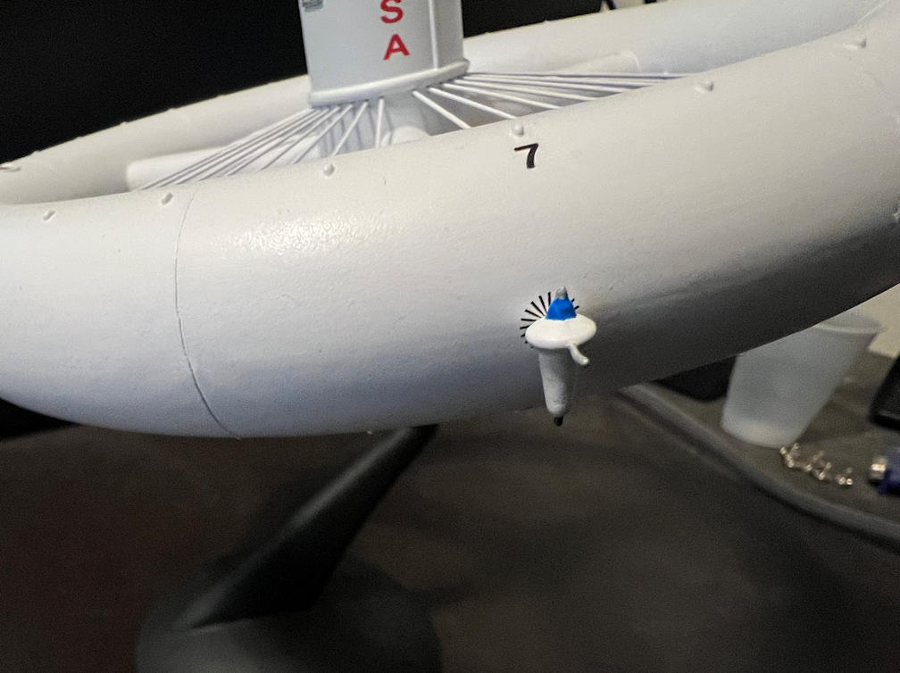 Finally it was time to glue the upper dome on and add the antennas, bottle suits and thruster to the station.