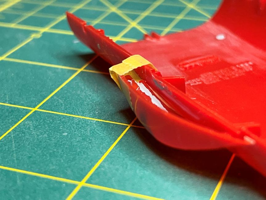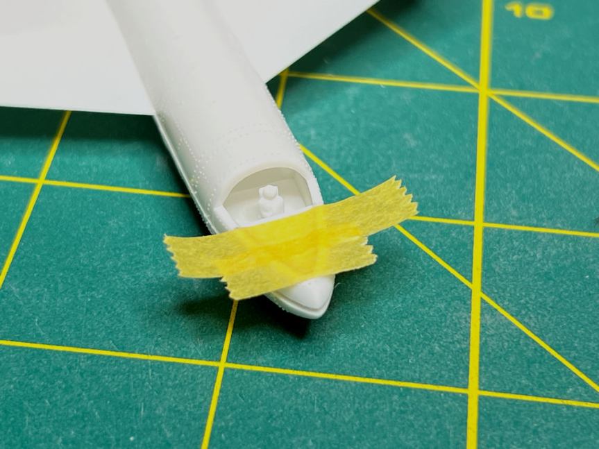 I turned it over and added some masking tape to the underside. This formed a small cup so I could fill it with some Mr. Surfacer 500.