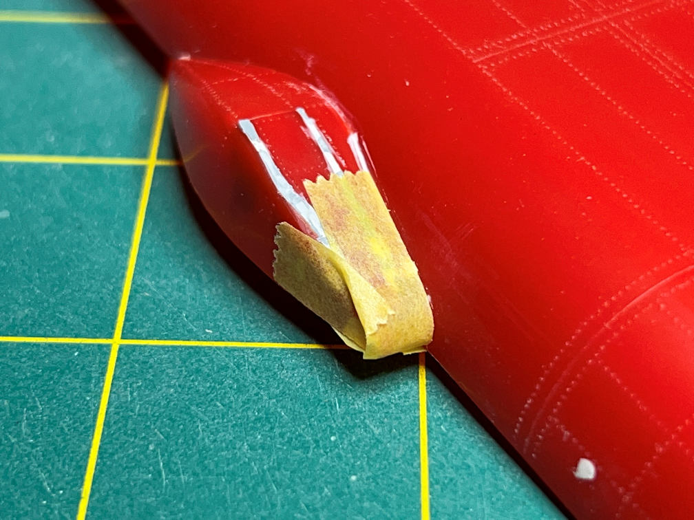 I turned it over and added some masking tape to the underside. This formed a small cup so I could fill it with some Mr. Surfacer 500.
