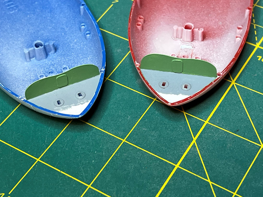 The instrument area of all cockpits was also painted Dark Ghost Gray. They then got a light coat of Tamiya Clear to prepare them for decals which are meant to look like controls.