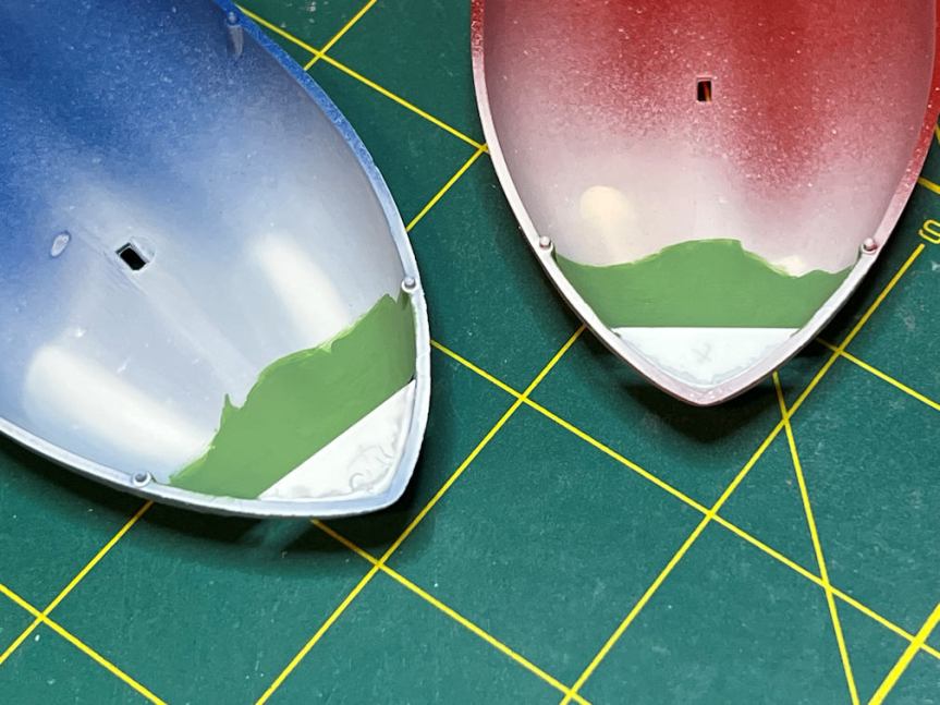 The interior of the cockpits were painted Green Sky as well as the entire interior of the passenger rocket.