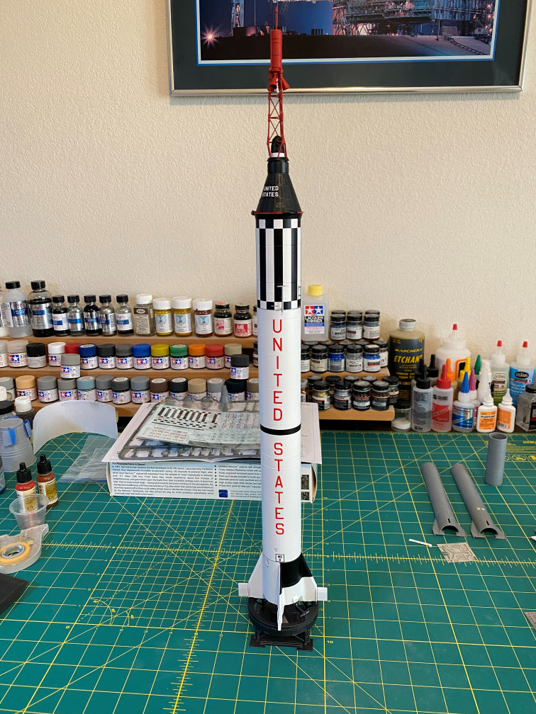 The final one of the three was the 1/200 Mercury Redstone from the AMT Man In Space kit. It was built to represent the MR-BD flight which immediately preceded Alan Shepard’s first flight and according to him and some others, cost the US from being the first to put a man into space.