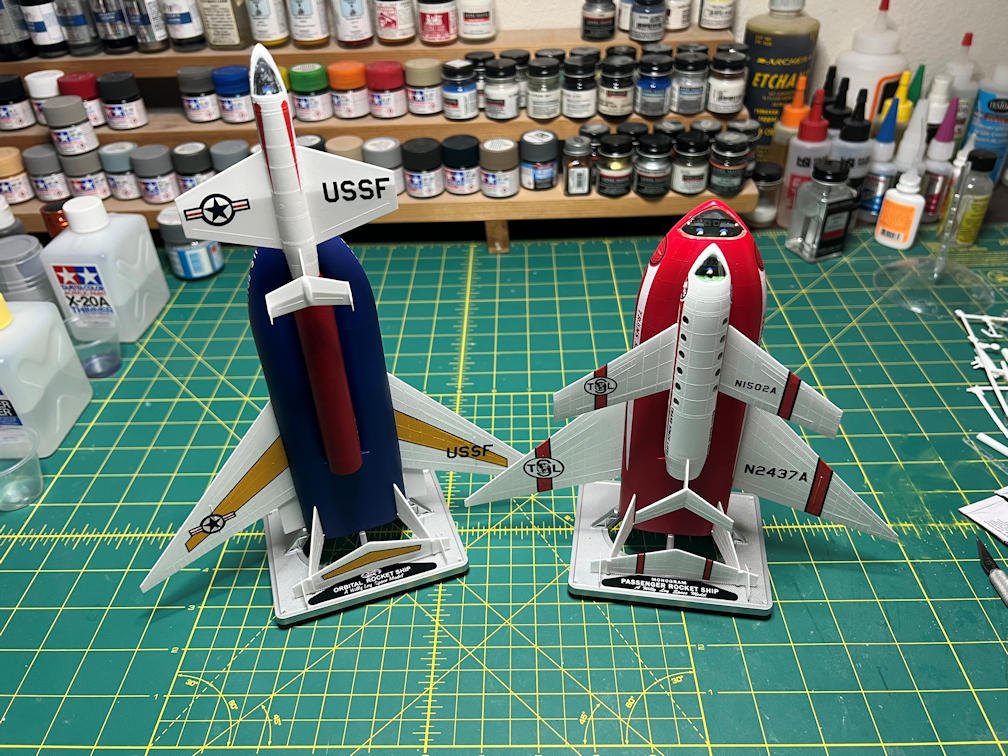 I ended the year with a double build. Once again both kits were from the late 1950’s. They were the Willy Ley Passenger Rocket and Orbital Rocket. The Passenger Rocket was re-released a few years ago by Monogram, the original producer of both of the kits. The Orbital Rocket was re-released just this past year by Atlantic, which had somehow obtained the molds for the very rare Orbital Rocket. They were fairly simple kits that I added a tiny bit of scratch work to make the cockpits a little less sparse.