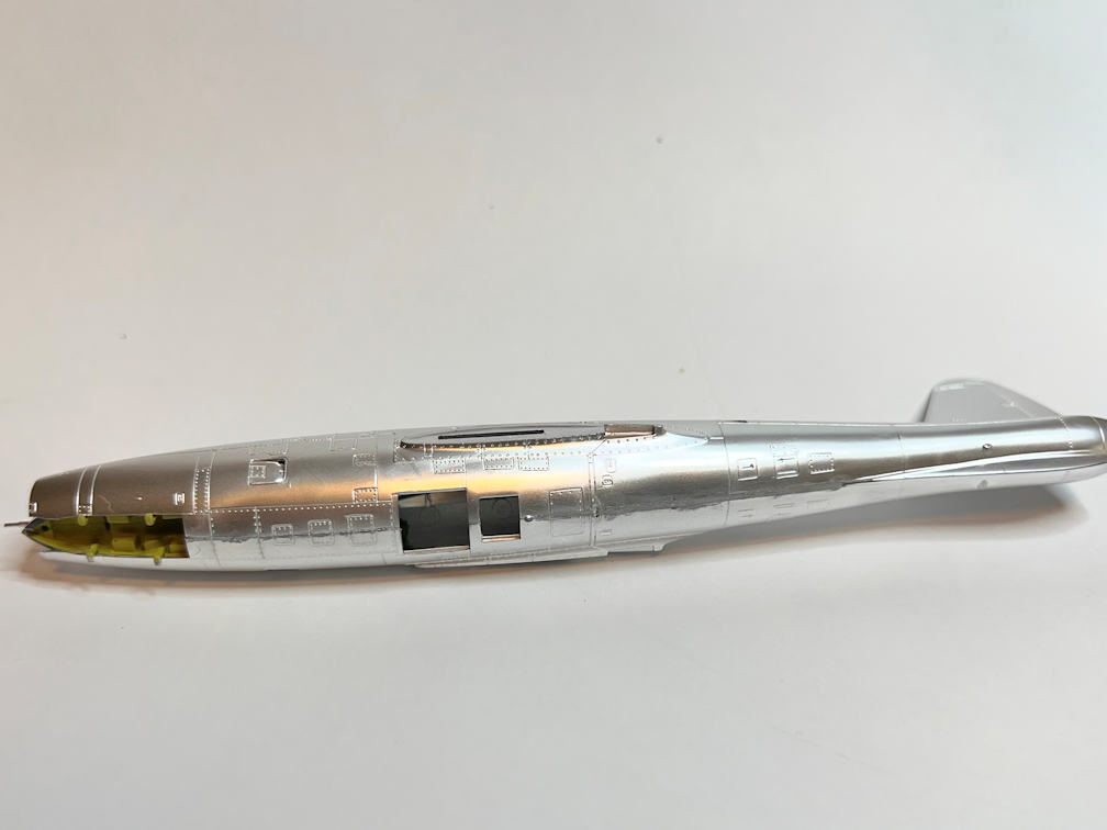 In between coats on the gear bays I put masking tape close to the seam on the bottom rear of the fuselage. I needed to do a bit of seam work here and I used the masking tape to protect the other areas.