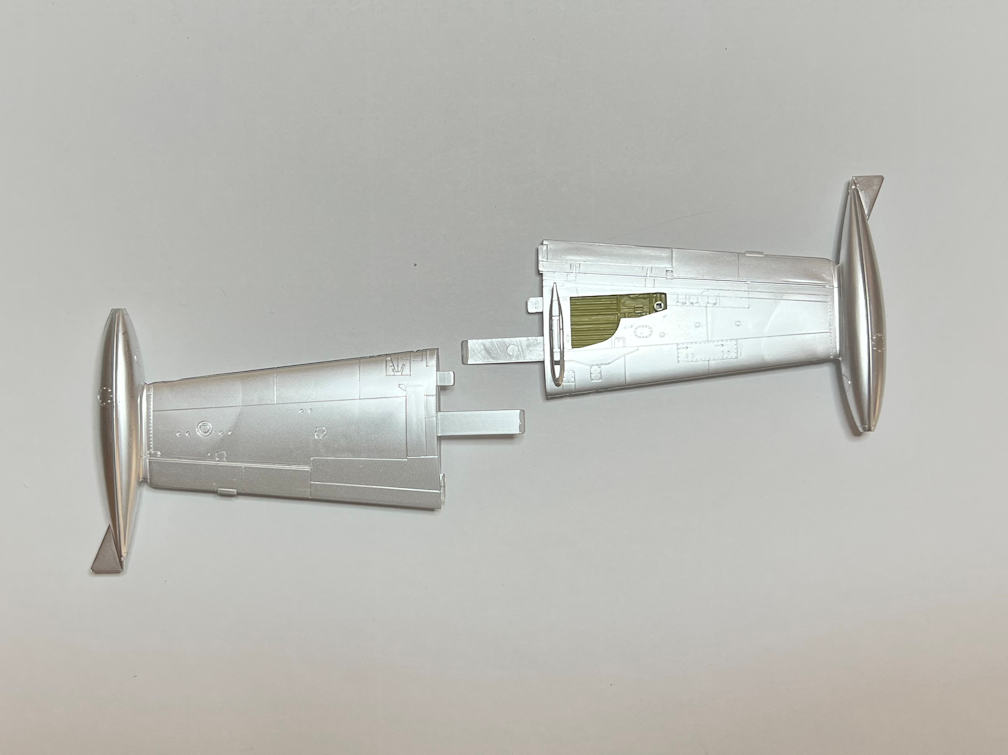 I glued the upper and lower wing halves together by applying Tenax liquid weld carefully to the seams. The parts fit was excellent with very few gaps.
