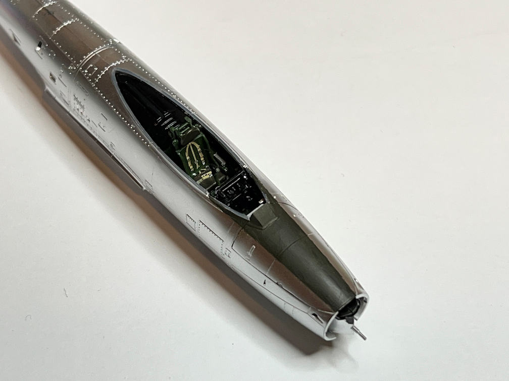 With that problem apparently vanquished, I took a break from the wings and painted the anti-glare panel in front of the cockpit with Tamiya TF-62 Olive Drab.