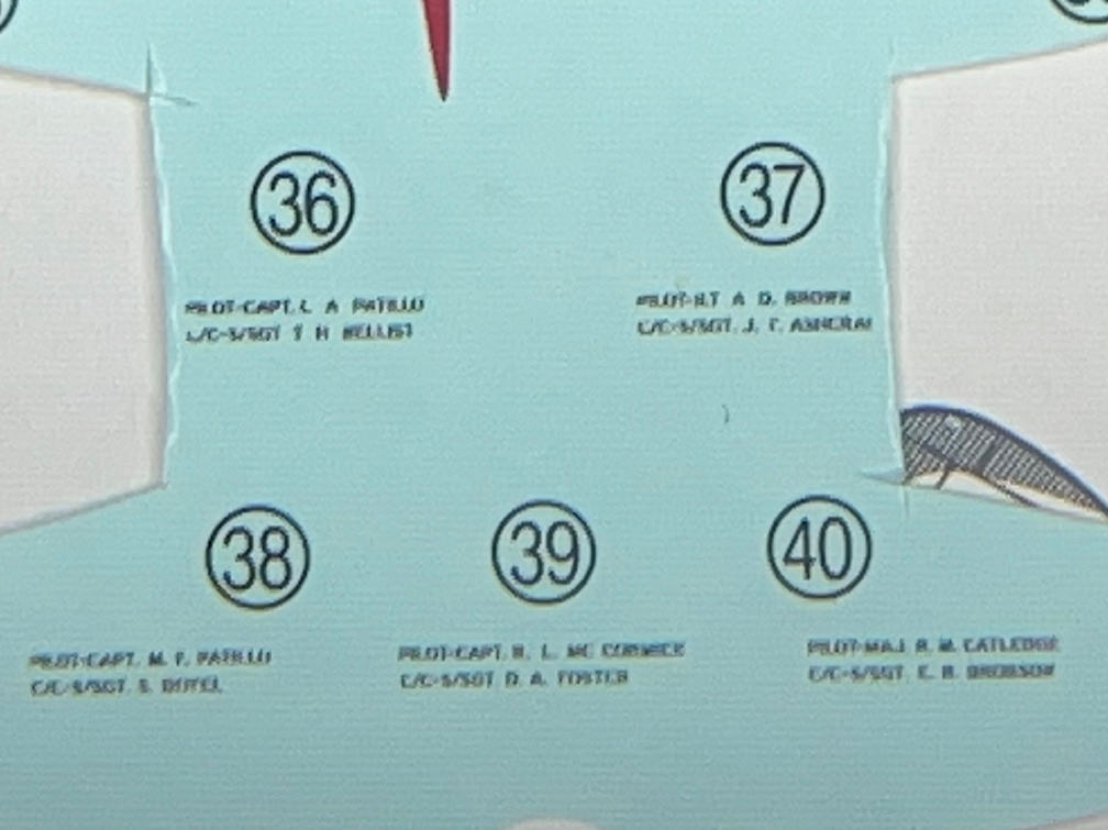 I’ve also spent some time researching some of the decals that need to be applied later. One of them is the plane’s tail number and the pilot name plate that goes on the canopy. You’d think it would be documented somewhere, and it is, but connecting the pieces is the hard part.