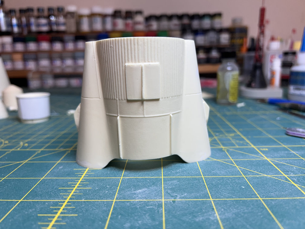 After doing the first 22 stringers, I took a break and went back to my reference photos to try and find a photo that would show the hold down points on the booster engine fairings. I’ve never liked the look of the kit hold-downs that were molded into the skirt. But I hadn’t found a good photo to show what they actually looked like. It took some, time but I finally found one.