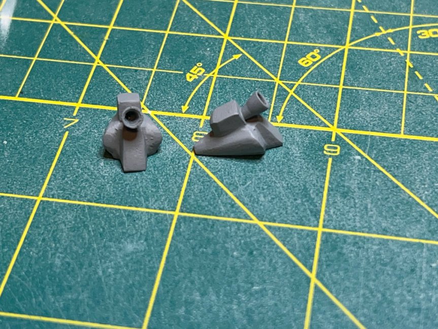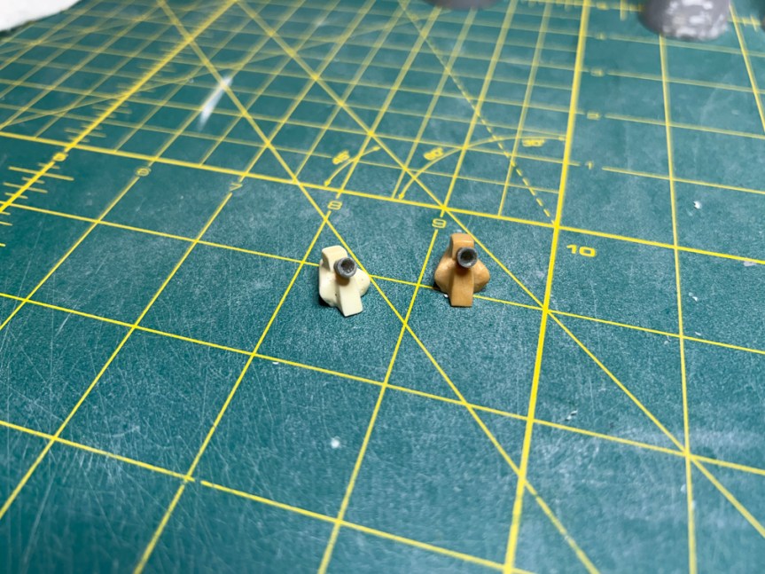 They will still need to be drilled out a bit, but they should work well. I noticed when I tried to glue one of them to its housing part that the CA wouldn’t hold. I pulled the part off and cleaned the CA off of it and then noticed the paint. It appeared to be some enamel metallic paint. I looked through my various thinners and found an enamel thinner. I soaked the nozzles in it for several minutes. The old enamel finally started to come off.