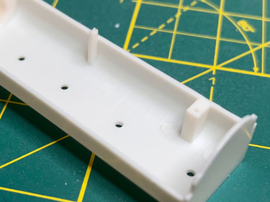 Next I looked at the Spacelab module itself. There were some raised areas that were supposed to represent hand holds on the outside of the module. They were very crude and too large.