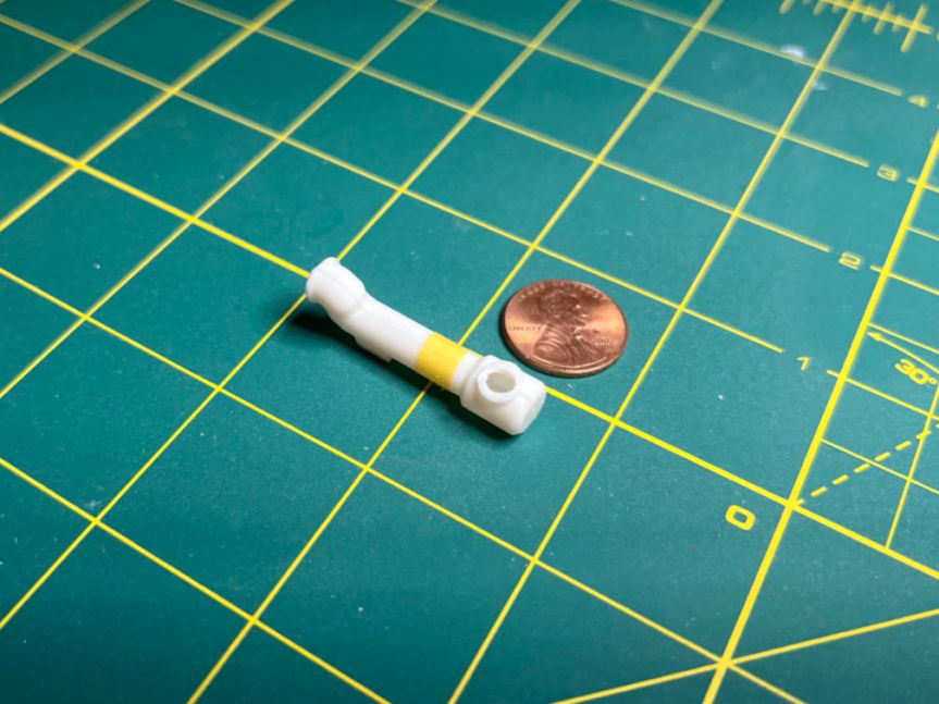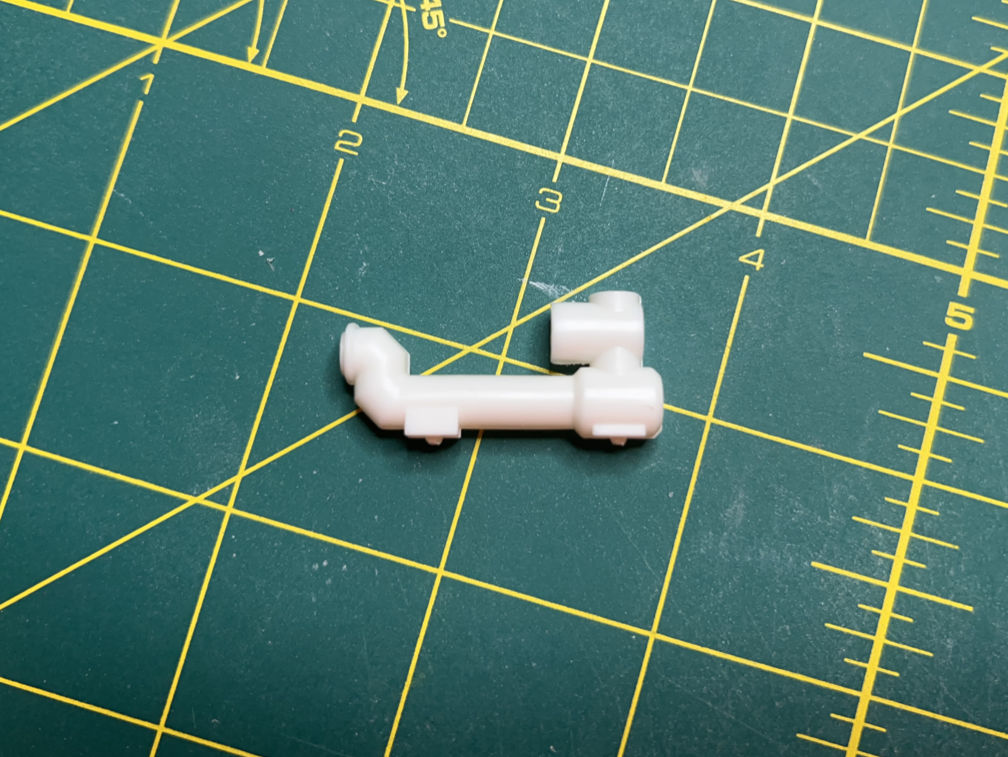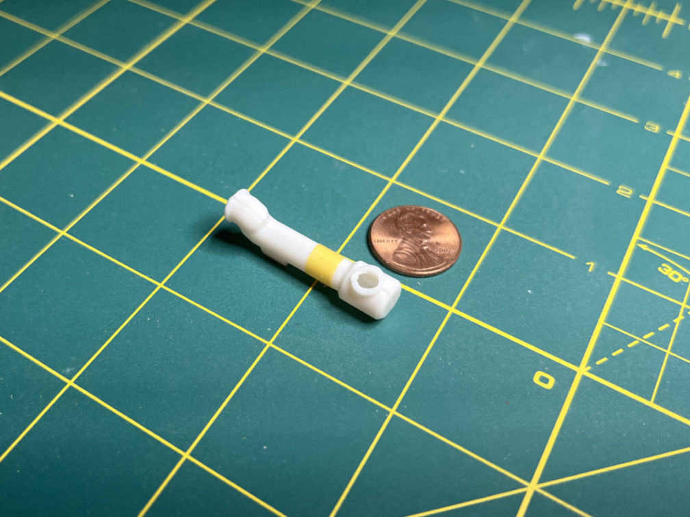 Next I noticed that there were large rectangular blocks that held the pins that mounted the tunnel to the payload floor. They would be very visible on the model and were not on the actual tunnel. I figured that I could remove an angled section from the sides of the blocks that would put them out of view and still retain the mounting pins. Here is a pic.
