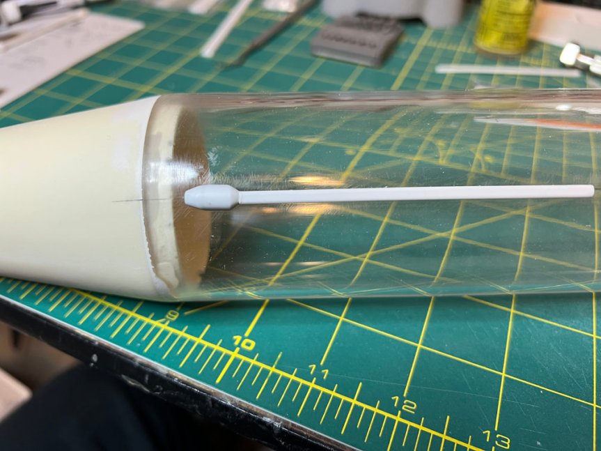 I then added the remainder of the instrument tunnel. I used Tenax for the portion that was on the acrylic tube and Plasti-Zap CA for the remainder that was on the conical resin part. Here is a photo.