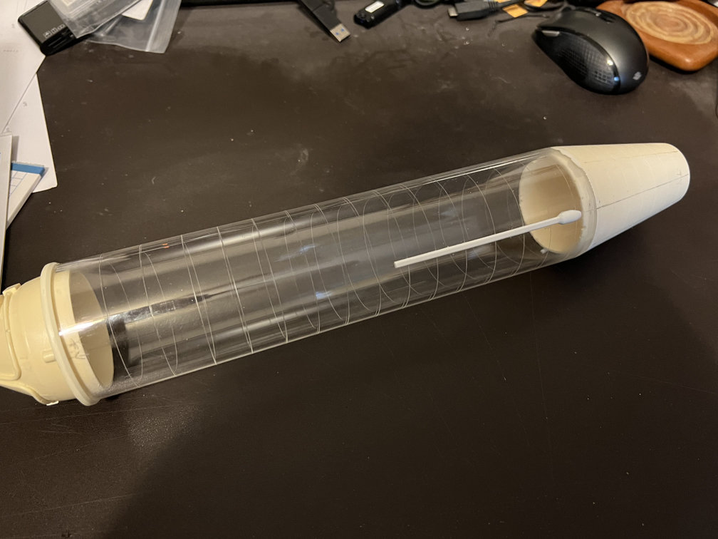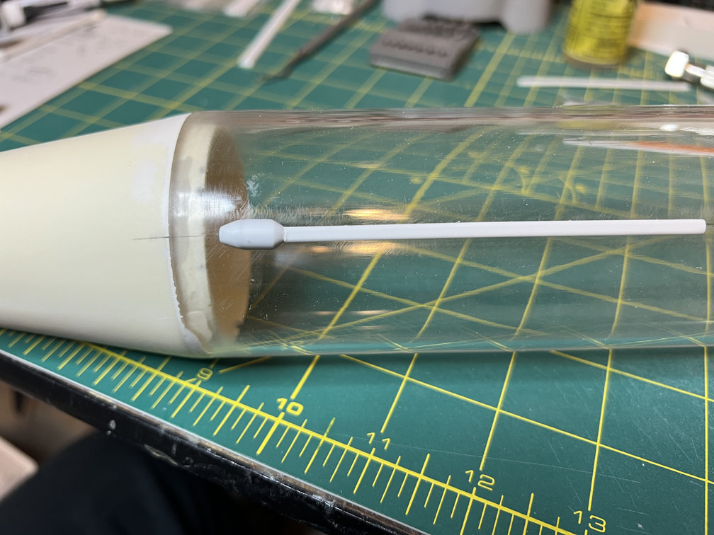 I then added the remainder of the instrument tunnel. I used Tenax for the portion that was on the acrylic tube and Plasti-Zap CA for the remainder that was on the conical resin part. Here is a photo.
