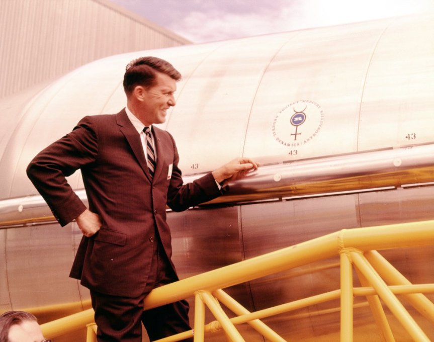 As far as the positioning and number of those logos on the vehicle, except for one photo of a test flight, I can only find definitive evidence for two being on the vehicle. For two of the manned flights there was one located as shown on the Schirra photo and another positioned similarly on the opposite side. The caption on the Flickr photo indicates that this is vehicle 107-D. Schirra was the back up for MA-7 so the photo with Wally and the logo would be for Carpenter’s flight, MA-7, which is the one I’m modeling.