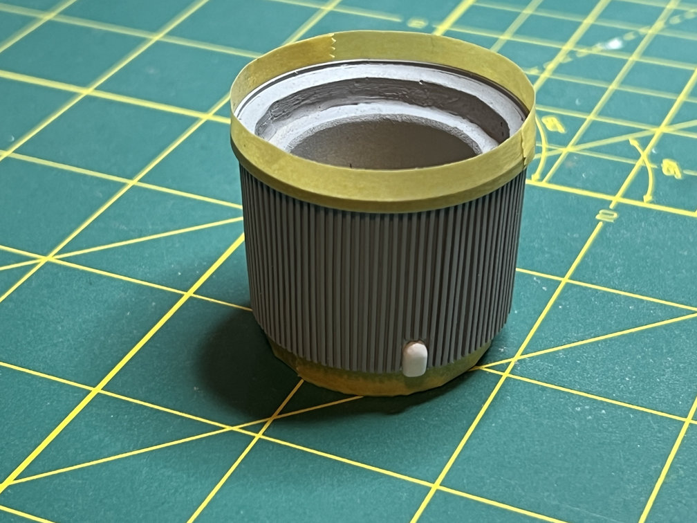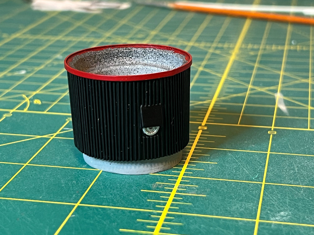 Here are two views of the completed capsule adapter. One shows the top of the tunnel and the other shows the oxygen vent after I painted it with Tamiya Aluminum.