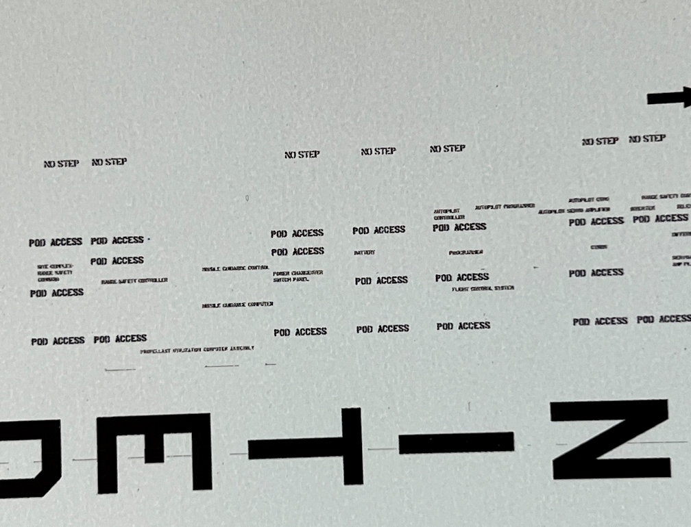 The other side was not so easy. I had to apply the letters one at a time and a few had to be creatively cut to fit around the stand-offs. They came out much better than I had anticipated. A little more MicroSet should got them to snuggle down the rest of the way. Fortunately, nothing special needed to be done to the rocket number since it was four characters long and all that was needed was to center it with the pressurization line.