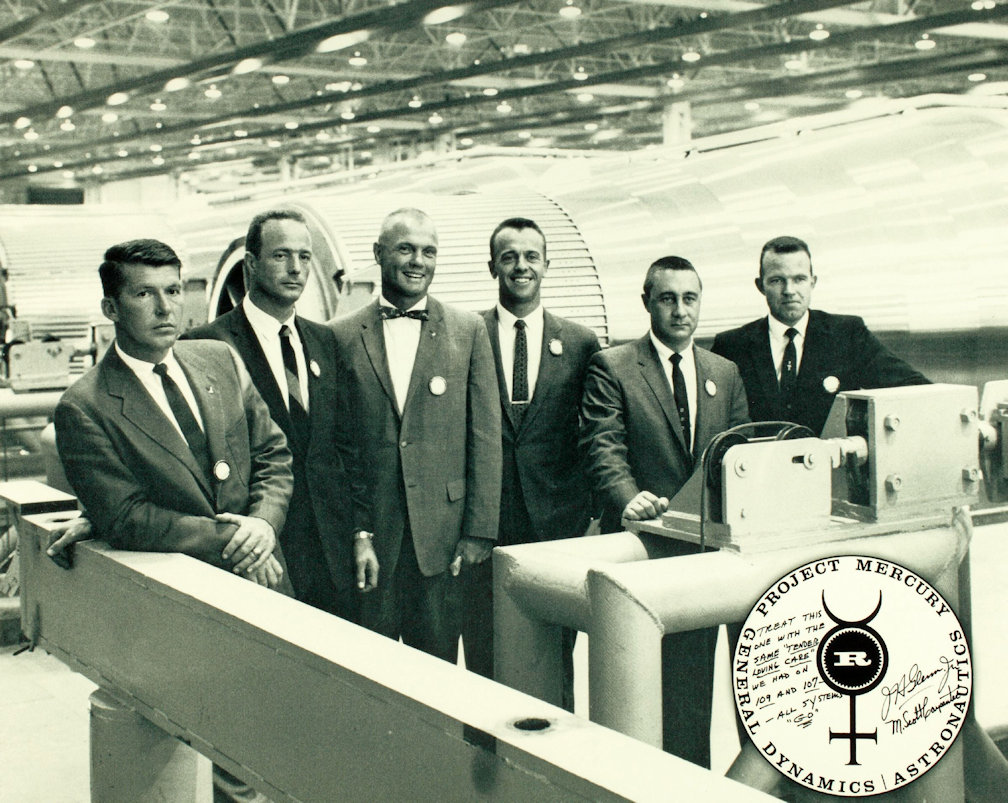 I first looked at all the images I had on hand to see if I missed it when I was looking at them before. I did find a couple of images that appeared to show something resembling this decal, but it too was too small to give any indication as to what it was. I started searching the internet and finally found a color image on collectSPACE messages under “Patches & Pins/Origin of Project Mercury (Mercury 7) logo” that showed Wally Schirra next to the symbol.